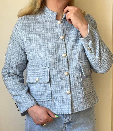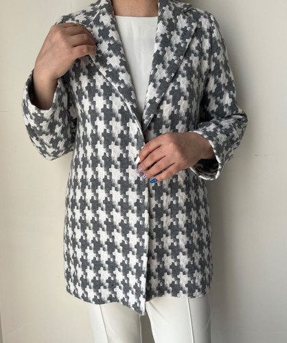 کت زنانه سفید و طوسی بافت درشت ترک یقه انگلیسی
