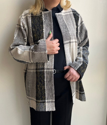 کت زنانه چهارخونه سفید مشکی کنفی