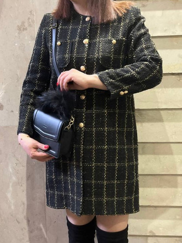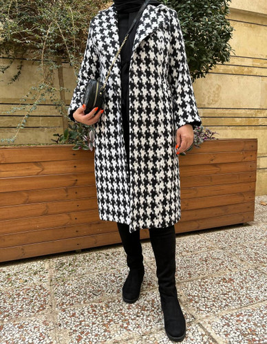 پالتو چهارخونه مشکی پشمی پیردوپل