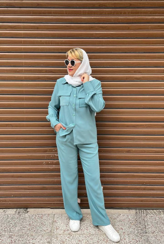 کت و شلوار زنانه سبز کرپ