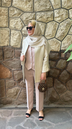کت و شلوار زنانه کرم لینن یقه انگلیسی